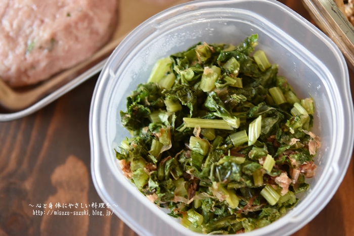 畑の水菜を間引いたものを、キレイに洗ってさつま揚げと煮浸しにしました。