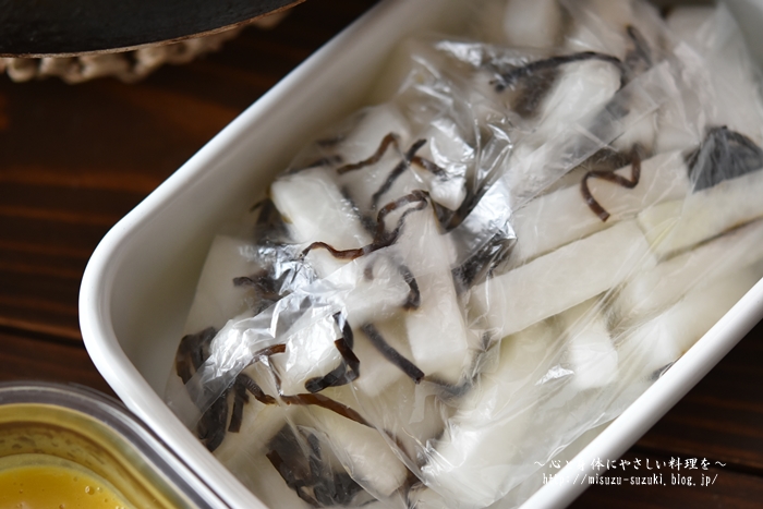 大根は拍子切りにして、塩昆布と
