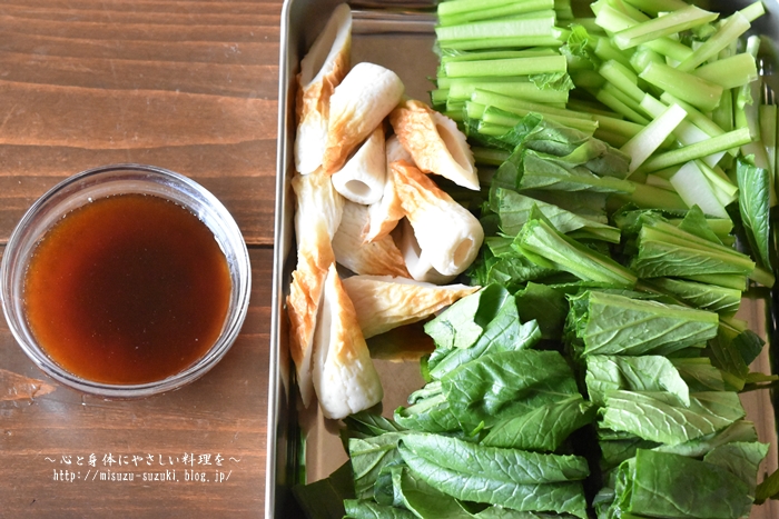 ・小松菜は切ったら芯と葉を分けておくと、調理がスムーズに進みます。
