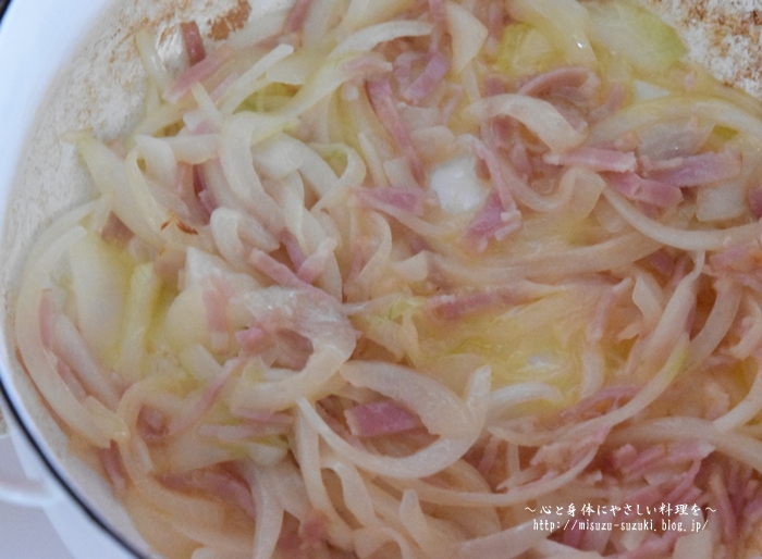 ・玉ねぎとベーコンは、しっかり炒めて下さいね