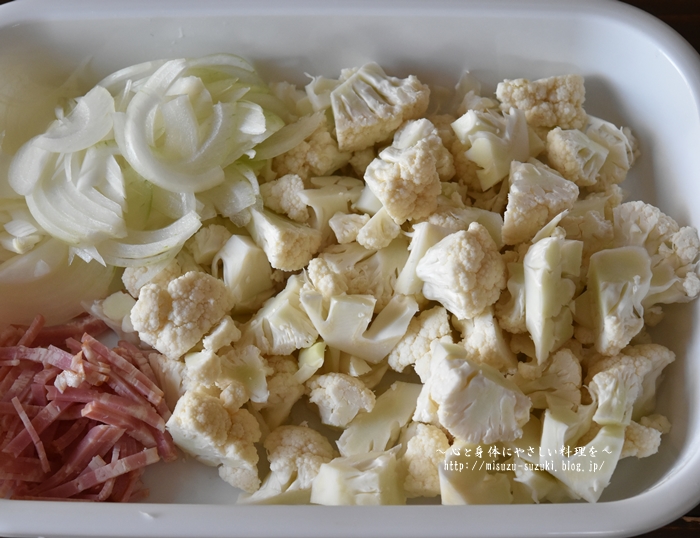 カリフラワー、玉ねぎ、ベーコン、牛乳が揃ったらどうぞお試し下さいね。