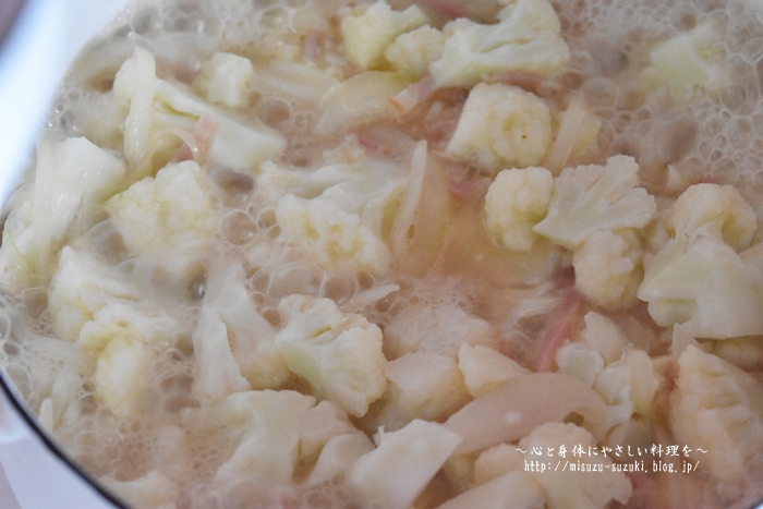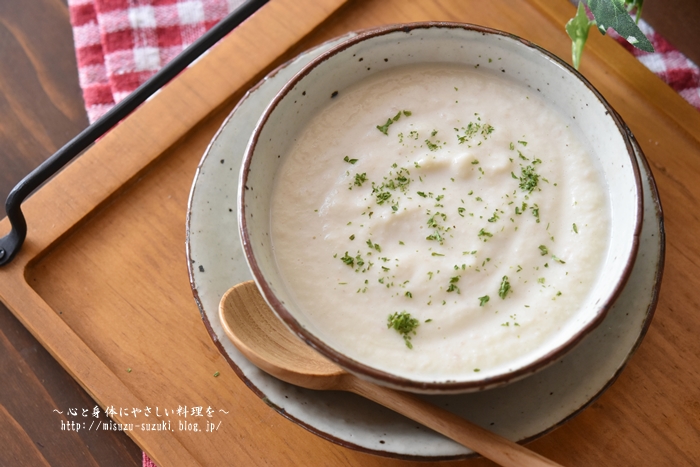 今日のレシピは、カリフラワーとチーズのポタージュスープです。