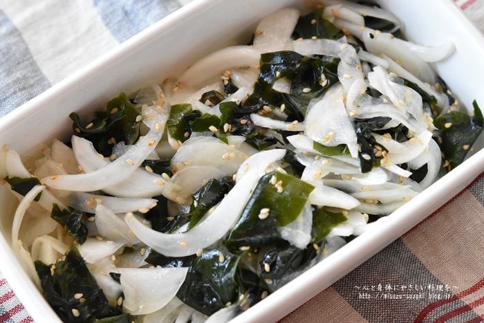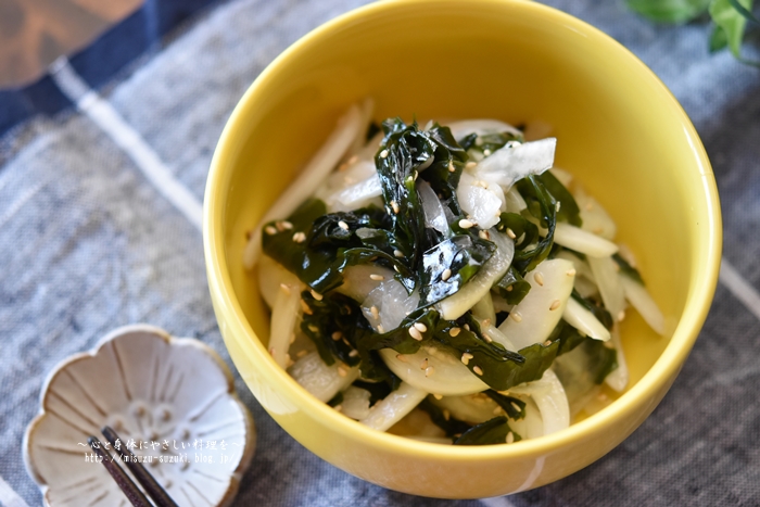 今日のレシピは、新玉ねぎとわかめのナムルです。