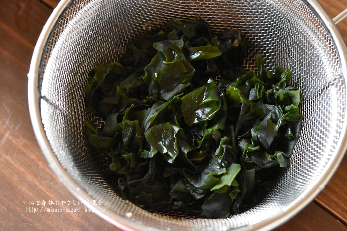 ②わかめはたっぷりの水に3分浸して、水気を絞る。