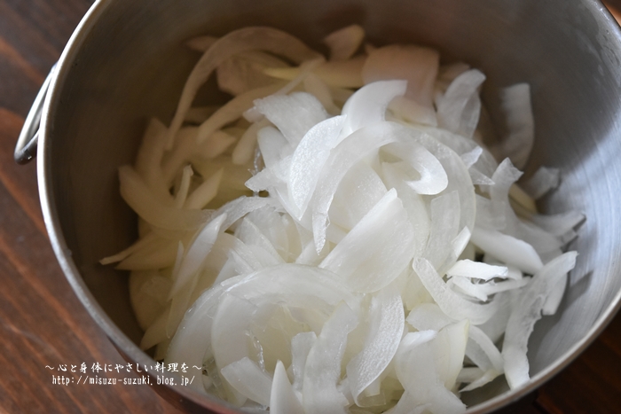 お水にさらす必要はないのですがサッと水洗いするとみずみずしさが残ります。