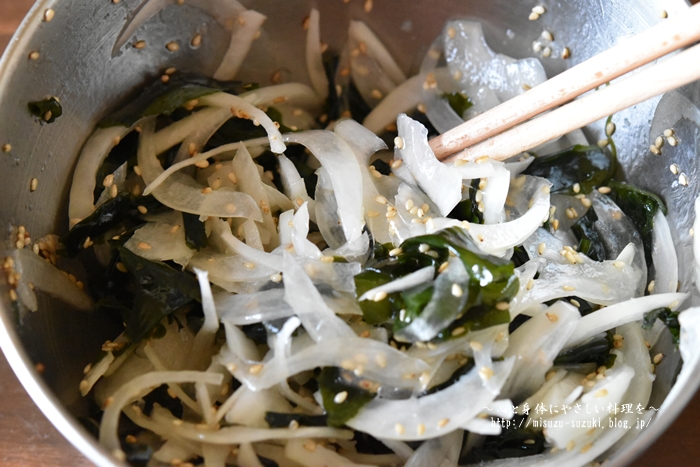 ・新玉ねぎとわかめの水気は良く絞って下さいね
