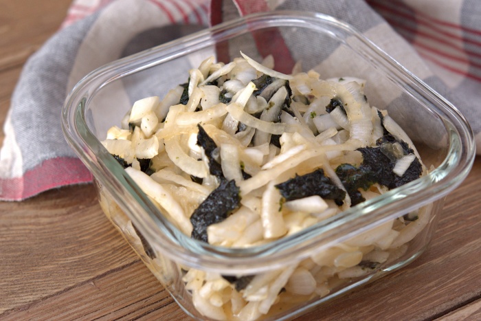 今日のレシピは、新玉ねぎと海苔の中華風サラダです。