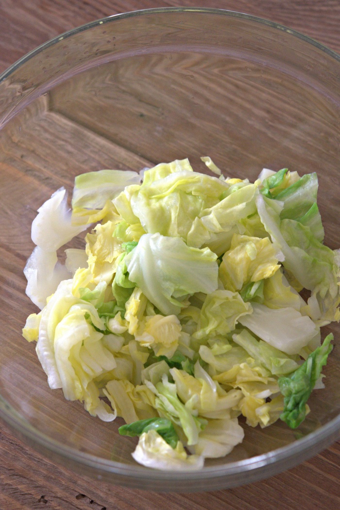 後から盛り付けると見栄えが良くなりますが春キャベツと一緒に混ぜても構いません。