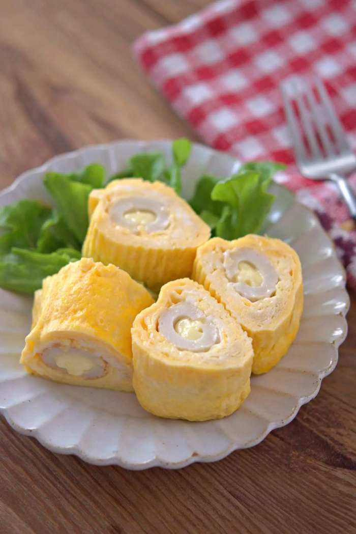【竹輪チーズの卵焼き】 <材料・作りやすい分量> ・卵 2個 ・竹輪 1本 ・棒チーズ 1本 ・サラダ油 少量 ●塩 ひとつまみ ●水 大さじ1 <作り方・調理時間10分> ①ボウルに卵を割り入れ、●を加え白身のコシがきれるまで混ぜる。 ②竹輪に切り込みを入れ、棒チーズを詰める。 ③卵焼き器にサラダ油をひき中火で温め、 1/3の卵液を流し入れフライパンを傾けながら卵液を広げる。 ④広げた卵の上に②を置いて巻き、卵液がなくなるまで繰り返す。 ⑤焼けたら巻きすで包み5分置き、食べやすい大きさに切る。 <コツ・ポイント> ・棒チーズはプロセスチーズでも代用可能です (4等分に切ってから竹輪に詰めて下さいね) ・ひとつまみとは、親指、人差し指、中指の3本の指で軽く摘んだ量になります。