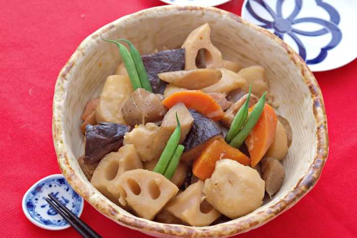 【鈴木家の筑前煮】 <材料・6~7人分> ・干し椎茸 3枚 ・里芋 4〜5個(約400g) ・ごぼう 1/2本(約100g) ・れんこん 180g ・人参 1/2本(約100g) ・板こんにゃく 1枚 ・いんげん 5本 ・鶏もも肉 1枚(約300g) ・サラダ油 大さじ1 ●干し椎茸の戻し汁 500cc ●酒・白だし 各大さじ2 ●醤油・みりん 各大さじ3 <作り方・調理時間40分> ①保存容器に干し椎茸と500ccの水(分量外)を入れて、 3時間以上置いて戻す。 ②里芋は良く洗い包丁で里芋の皮をグルッと1周切り込みを入れ、 耐熱容器に入れラップをふんわりかけ600w7分レンジで加熱する ③里芋のレンジ加熱が終わったら、 熱い内に清潔なふきんなどに包みながら皮をむき一口大に切る。 ④ごぼうは皮をこそげてひとくちサイズの乱切りにして、 水に5分浸してアクを抜きザルに上げて水気をきる。 ⑤れんこんは洗って皮をむき、ひとくちサイズの乱切りにする。 人参はピーラーで皮をむき洗って、ひとくちサイズの乱切りにする。 ⑥板こんにゃくの両面に格子状の切り込みを入れ、 ティースプーンでひとくちサイズにちぎる。 ⑦干し椎茸は軽く水気を絞って軸を切り、傘の部分を半分に切る。 鶏もも肉はペーパーで水気を拭き取り、ひとくちサイズに切る。 ⑧深めのフライパンを火にかけ温まったら、 板こんにゃくを入れて乾いた音になるまで中火で炒る。 ⑨⑧にサラダ油と鶏もも肉を加え、 鶏もも肉の表面に焼き色がつくまで炒め、 ごぼう、人参、れんこんを加え中火で3分ほど炒める。 ⑩ ⑨に●と里芋、干し椎茸を加え、 沸騰したら落し蓋をして蓋をずらして置き中火で15分煮る。 ⑪いんげんはヘタを取り、 熱湯に入れてサッとゆでザルに上げて冷まし半分に切る。 ⑫15分煮たら火を止め冷めるまで置き蓋と落し蓋を取り、 火にかけフライパンをゆすりながら煮汁がほぼなくなるまで煮詰める。 <コツ・ポイント> ・里芋は竹串を刺して硬ければ、1分追加でレンジ加熱して下さいね。 ・ペーパーの真ん中に穴を開けたものを被せると、 落し蓋の代わりになります。 ・甘めがお好みの方は砂糖を大さじ1ほど加えて下さいね <保存方法・保存期間> ・保存容器に入れ冷蔵保存で4日