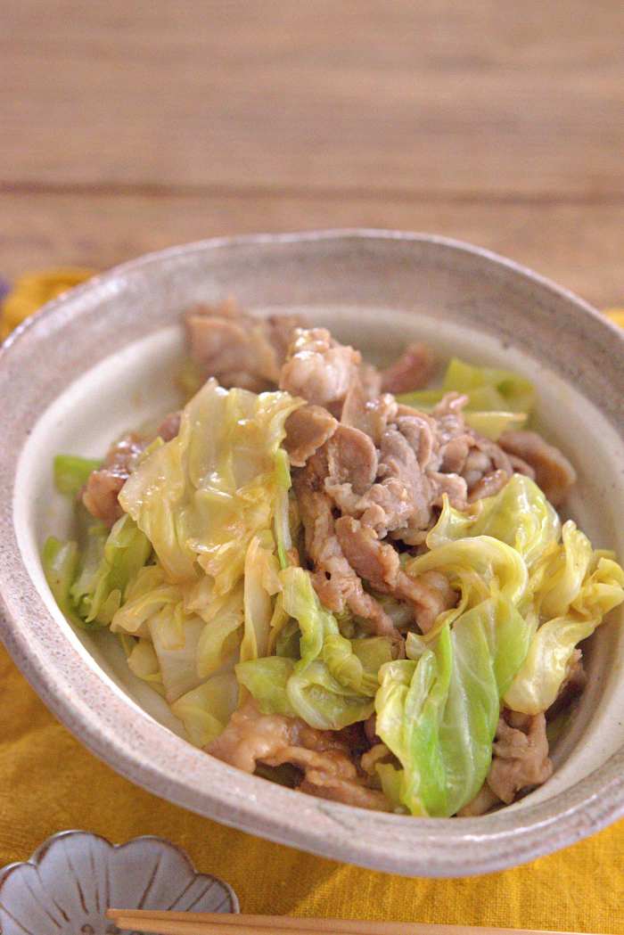 【春キャベツと豚こまのうま煮】 <材料・2人分> ・豚こま切れ肉 200g ・春キャベツ 1/4個(約300g) ・ごま油 小さじ1 ●片栗粉 小さじ1 ●酒 大さじ1 ★酒・みりん・醤油 各大さじ1 ★すりおろしにんにく 小さじ1 <作り方・調理時間15分> ①豚こま薄切り肉は●を揉み込む。 春キャベツは芯を取り、食べやすい大きさのザク切りにする。 ★を混ぜ合わせる。 ②フライパンにごま油をひき中火で熱し、 豚こま薄切り肉を広げて並べ、焼き色がつくまで焼く。 ③焼き色がついたら裏返し、 フライパンの隅に寄せ春キャベツを入れてサッと炒め★を加え、 蓋をして中火で3分煮る。 <コツ・ポイント> ・3分煮ている間は、時々蓋を開けて上下を返して煮て下さいね ・春キャベツはしっかり炒めると甘みが増します