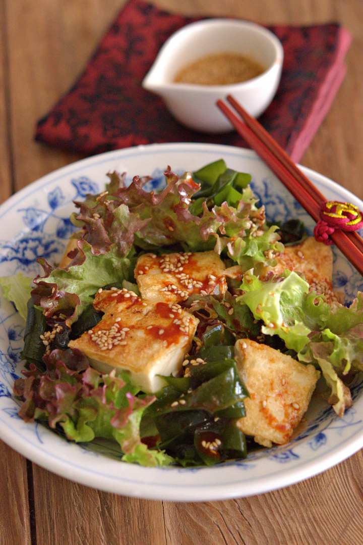皆様こんにちは いつもご覧下さりありがとうございます(^^♪ 今回の動画は、カリッと豆腐のチョレギサラダレシピのご紹介です。 ドレッシングがやみつきになるチョレギサラダに、 カリカリに焼いた豆腐をトッピングするだけなのに、 ボリューム満点でたんぱく質も摂れる、カラダにやさしいサラダ。 ひと手間は掛かりますが、 この組み合わせがクセになり、 また作りたくなるレシピになったとおもいますので、 ぜひお試し下さいね(^^♪