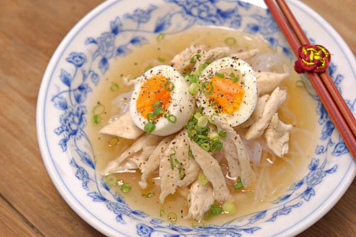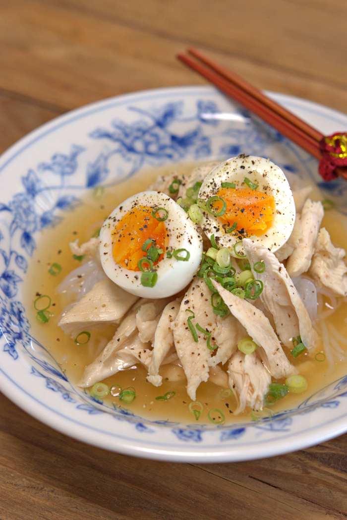 皆様こんにちは いつもご視聴ありがとうございます(^^♪ 今回の動画は、蒸し鶏としらたきの鶏だし冷麺風レシピのご紹介です。 麺類を食べたいけどダイエット中だから控えなきゃ。。 そんな時は麺をしらたきに代えてみるのはどうでしょう。 トッピングもたんぱく質が摂れる、 蒸し鶏とゆで卵なので満足感があります。 そして少し濃い目の鶏だしスープが、 しらたきにしっかり絡みまるで冷麺!! トッピングもその日の気分や冷蔵庫にあるもので作ると、 飽きがこないので色々アレンジしてみて下さいね。