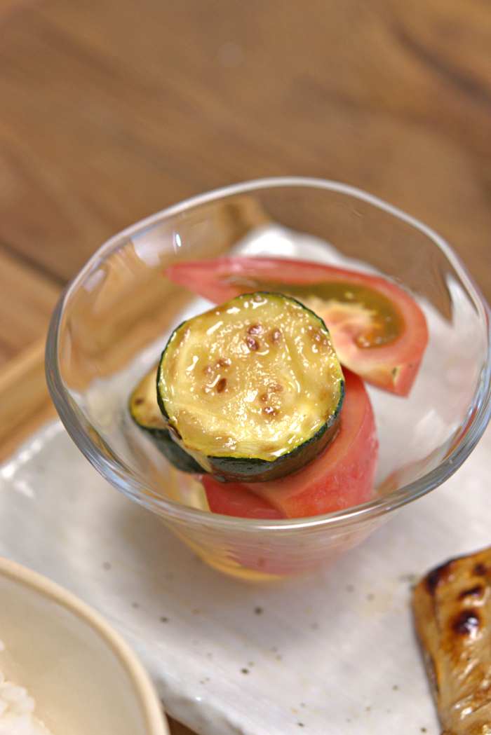 副菜はズッキーニとトマトのマリネ。