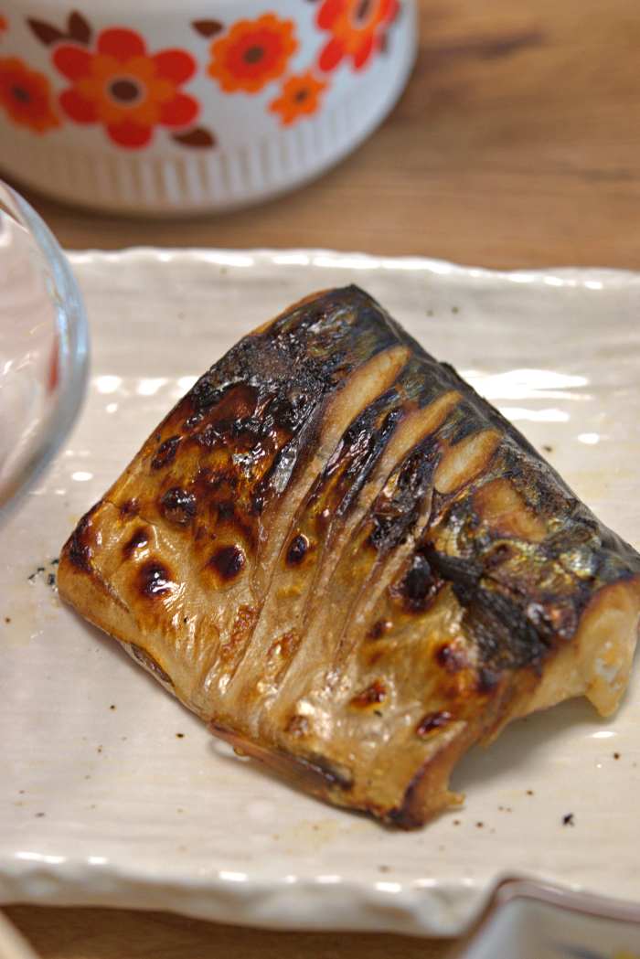 この日のメインは昆布サバの塩焼き。