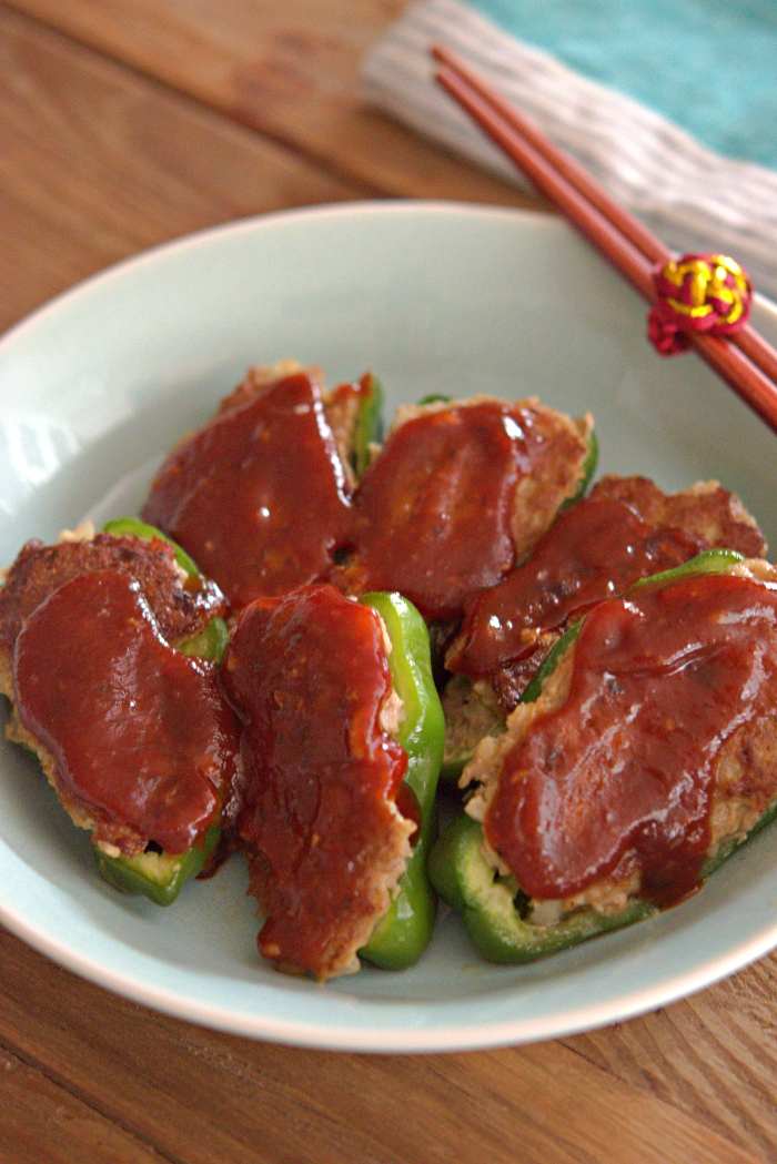 皆様こんにちは いつもご視聴ありがとうございます(^^♪ 今回の動画は、家庭料理の定番「ピーマンの肉詰め」レシピのご紹介です。 ピーマンが美味しい旬の時期に作りたいピーマンの肉詰め。 肉だねに入れる玉ねぎは、みじん切りにしたらそのまま肉だねに入れるので 炒める手間が省けとっても楽に作る事ができますよ。 なので玉ねぎのみじん切りをがんばったら、 後はそんなに大変な作業はないので意外と簡単に作れますよ。 今回のレシピのポイントは、肉だねをピーマンに詰める時、 少しこんもり詰めるのがポイント!! 焼くと肉だねが縮むのでちょうどいい感じにしあがります。 ぜひお試し下さいね(^^♪
