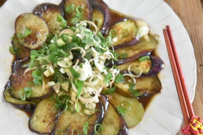 皆様おはようございます。 いつもご視聴ありがとうございます(^^♪ 今回の動画は、なすの薬味サラダレシピのご紹介です。 なすをとろとろになるまでフライパンで焼き、 さっぱり要因のたれとたっぷりの薬味をかけていただきます。 ご飯のおかずにはもちろん、 お酒のおつまみとしても最適です。 たれはお酢がベースになっていますが、 酸味がやさしいのでお酢が苦手な方でも食べやすいと思いますよ。 なすの消費にもお役立ていただけますので、 ぜひお試し下さいね(^^