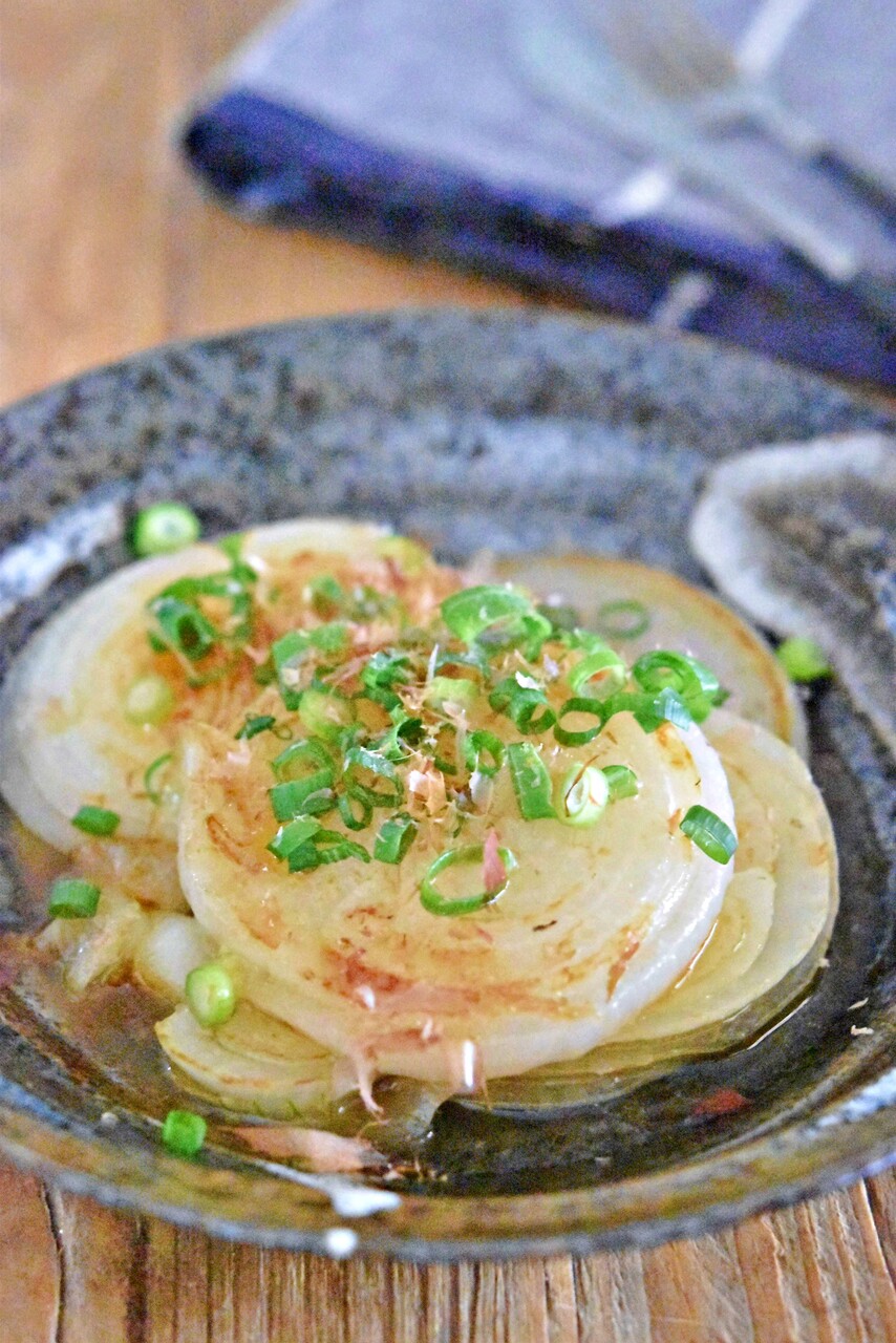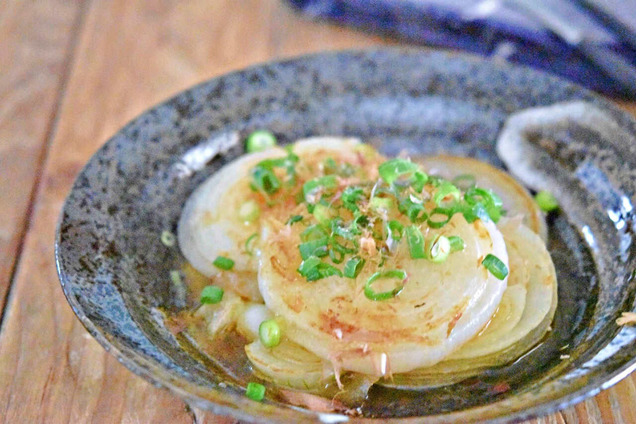 【新玉ねぎのとろとろ塩だれステーキ】 <材量・2人分> ・新玉ねぎ 1個 ・塩 少量 ・薄力粉 大さじ1 ・サラダ油 大さじ1 ・かつお節 少量 ・刻みネギ 少量 ●ごま油・酒・みりん 各大さじ1 ●レモン汁・すりおろしにんにく 各小さじ1 ●鶏がらスープの素 小さじ1/2 <作り方・調理時間15分> ①●を混ぜ合わせる。 ②新玉ねぎは皮をむき、 1cm幅の輪切りにして両面に塩をふり薄力粉をまんべんなく薄目にまぶす。 ③フライパンにサラダ油をひき中火で熱し、 新玉ねぎを並べ焼き色がつくまで焼き、 焼き色がついたら裏返し中火で2分ほど焼く。 ④2分焼いたら●を加え、 フライパンをゆすりながら全体的になじませ 器に盛り付けかつお節と刻みネギをちらす。 <コツ・ポイント> ・薄力粉をまぶす事で新玉ねぎが型崩れする事を防げますので、 まんべんなくつけるようにして下さいね。