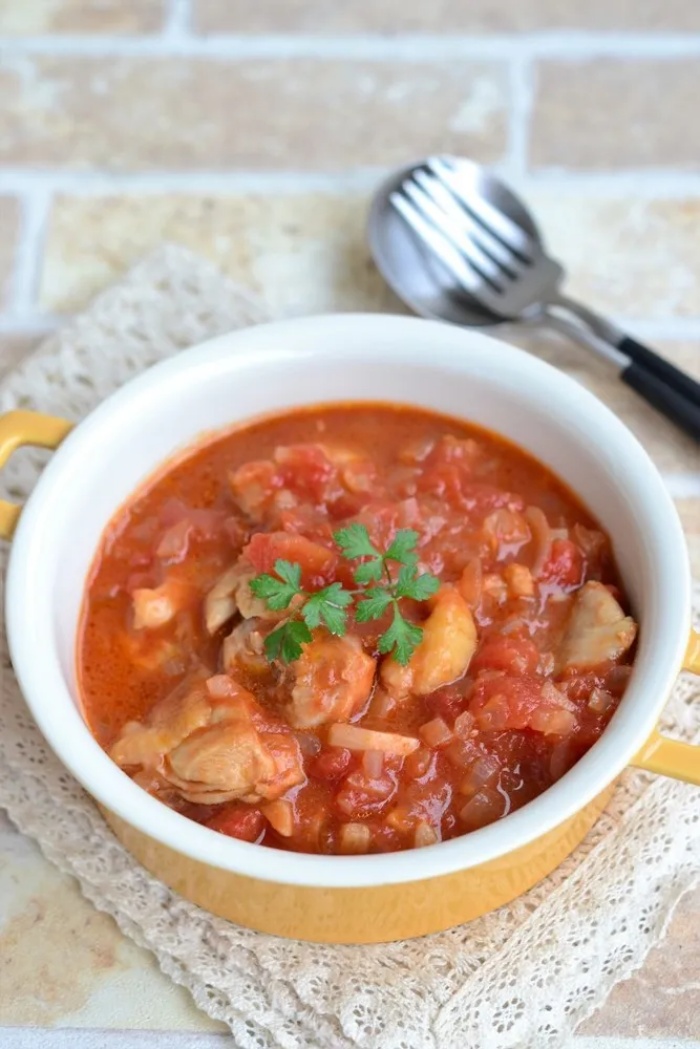 鶏もも肉のトマト煮込みは、